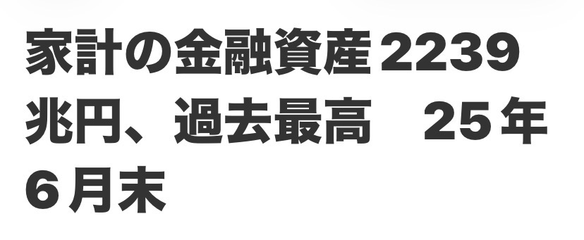 家計の金融資産2239兆円、過去最高 25年6月末 – 日本経済新聞